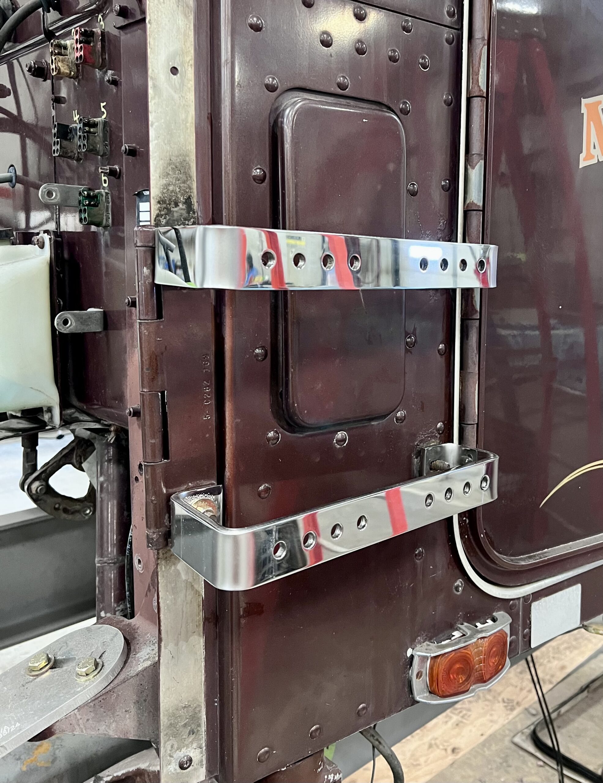 You are here: Home / Kenworth / Dirks2012 – Kenworth W900 Polished Stainless Air Cleaner Mounting Brackets (Sold In Pairs)